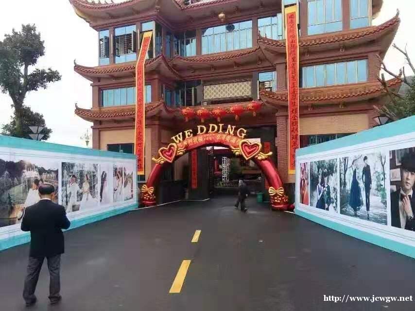 一、整洁气派迎宾区 结婚是一生最值得炫耀的事情。正所谓,人靠衣装,佛靠金装,那么会场,当然也应该有一个好的门面--迎宾区。迎宾区,应围绕着“整洁”和“气派”这两大主题来布置!